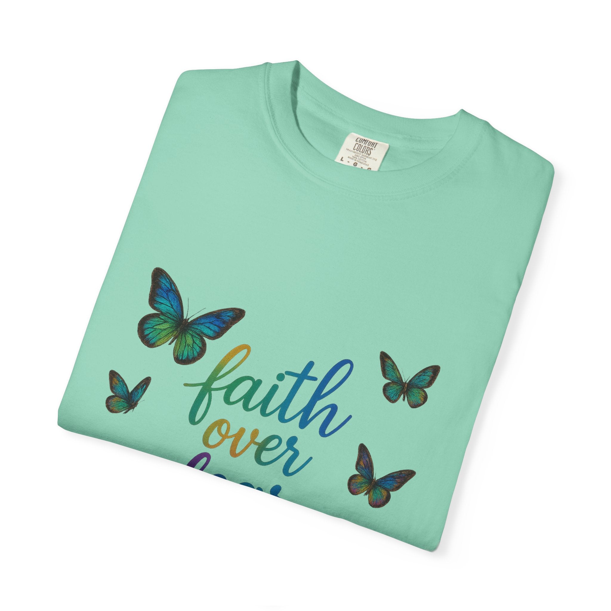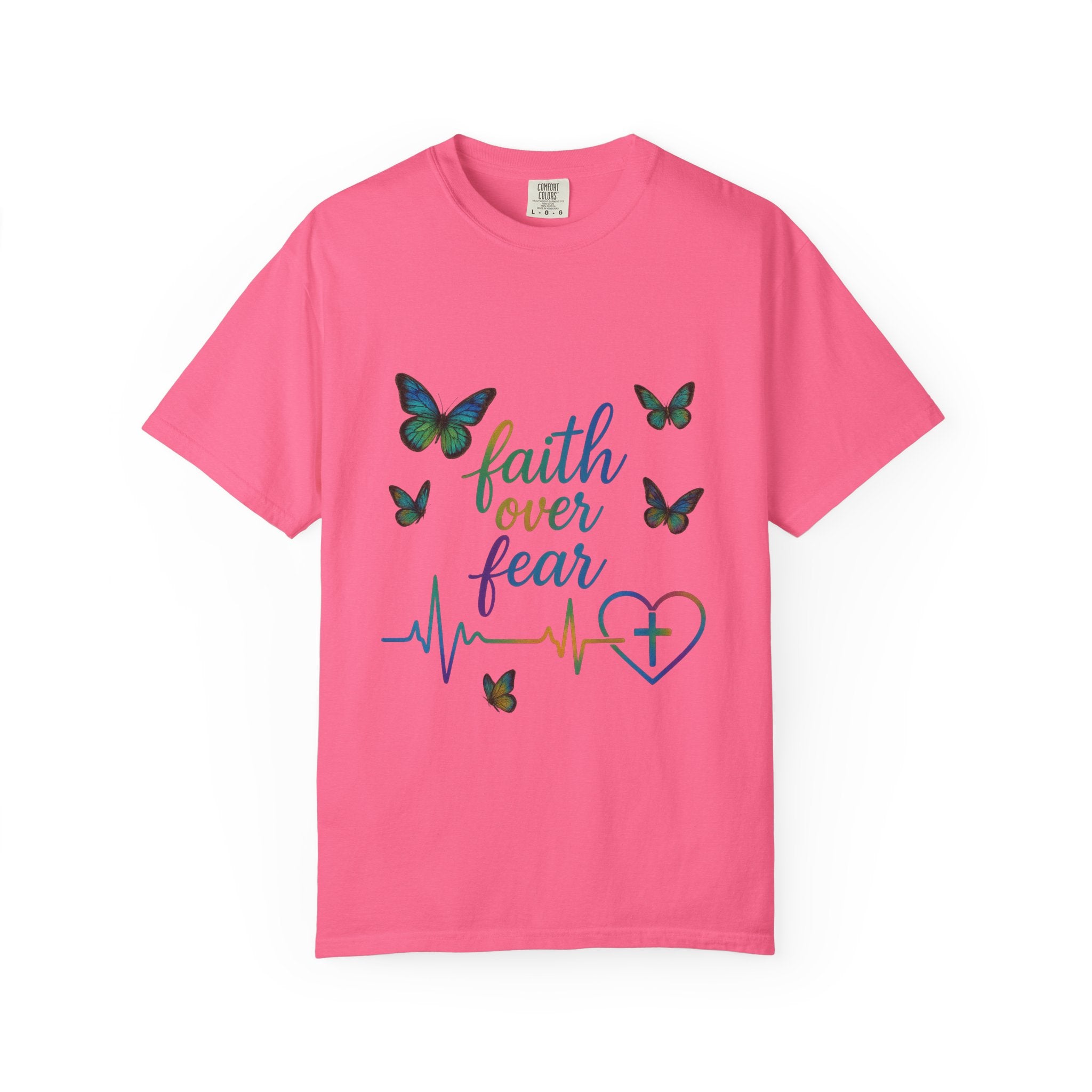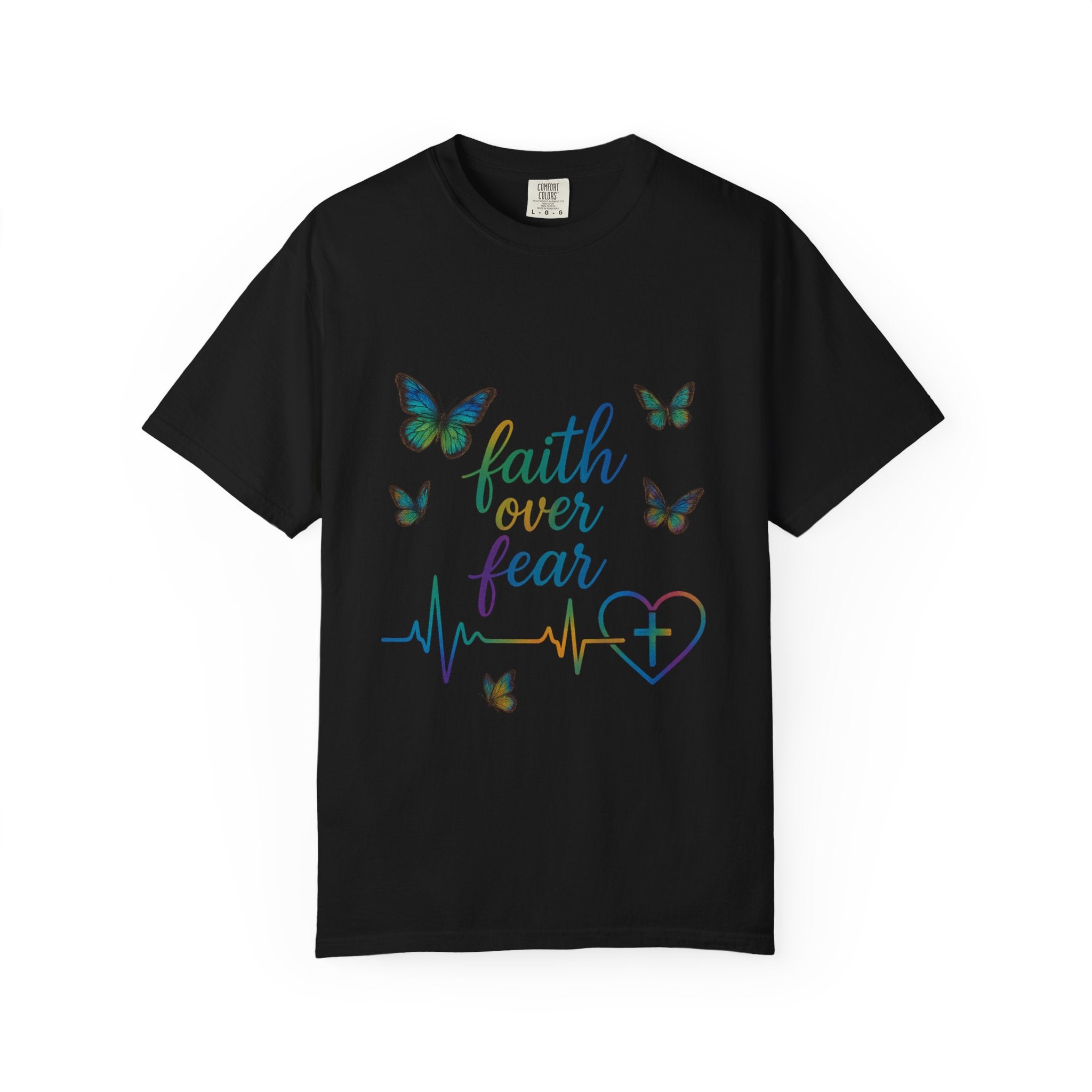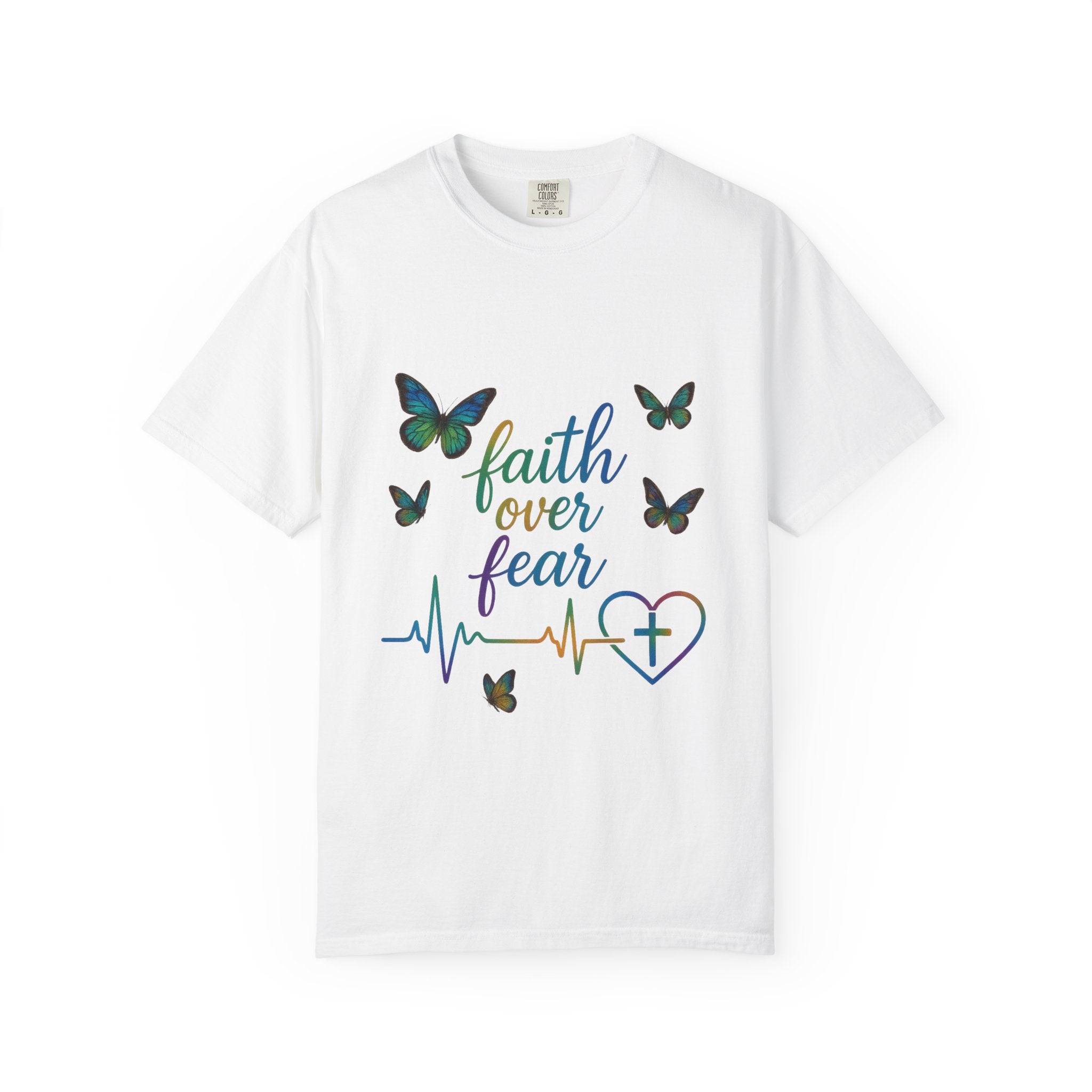 Faith Over Fear T‑Shirt — Christian Heartbeat Butterfly Tee